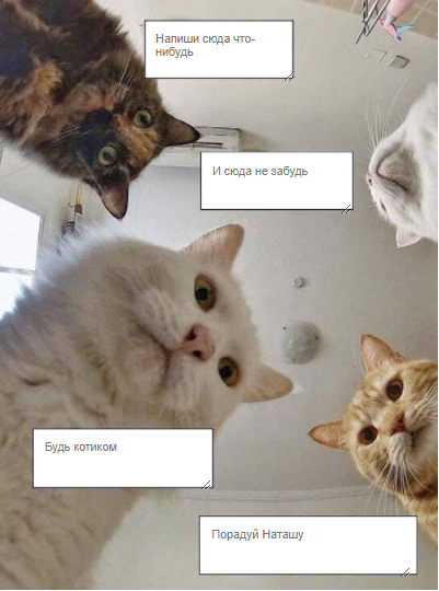 Когда мир вокруг снова начнет пошатываться, наш генератор поможет быстренько сделать мем, в котором коты за вас предупредят Наташу, что случилось что-то плохое.