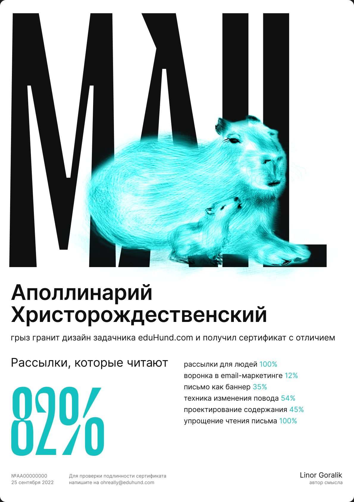 Этот задачник целиком и полностью создан по лекции «Рассылки: стратегии и тактики» Линор Горалик (признана иностранным агентом).