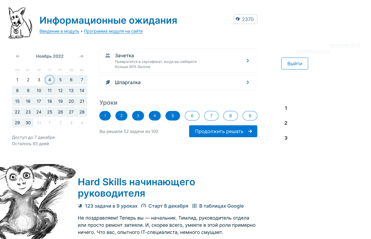 Модули «Информационные ожидания», «Сценарии взаимодействия» и «Интерфейсные фокусы» можно проходить только последовательно. Остальные модули независимы.